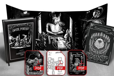 Dark Forest is a campaign setting for the Shadowdark RPG 5E system. It is a complete world with monsters, magic, ancestries, and classes ready for the Game Master to pick up and go.